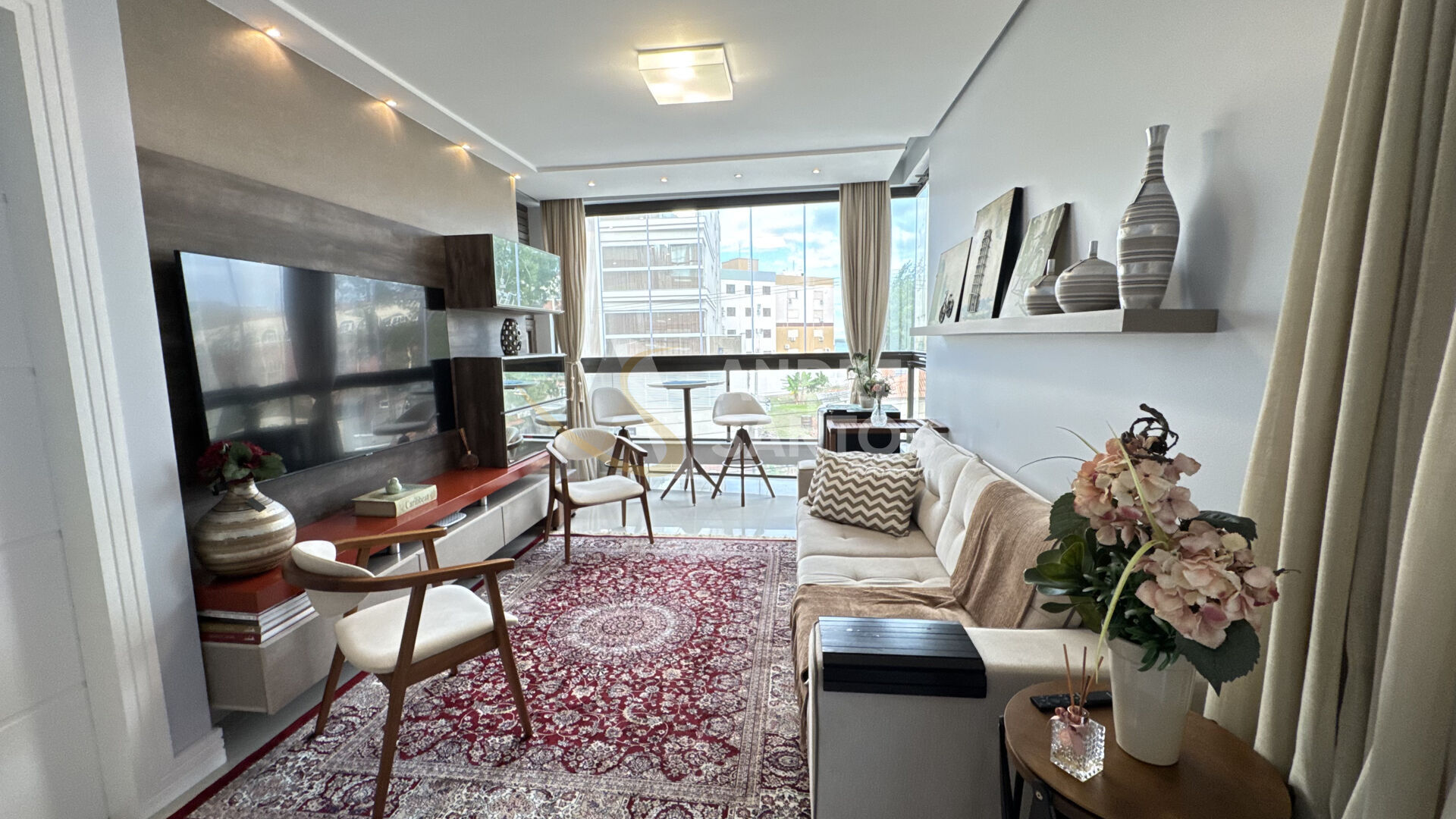 - Sala de estar com sacada integrada, proporcionando um ambiente mais amplo e aconchegante